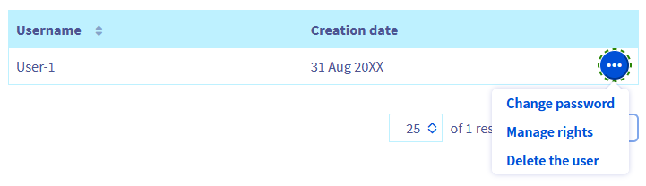 In the table that appears, click the ... button to the right of the user concerned, then Manage rights.