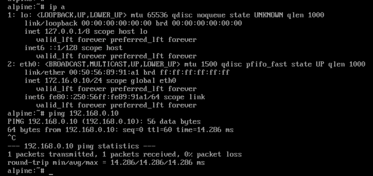 To check that your configurations and link are working properly, perform a ping test between the different virtual machines.