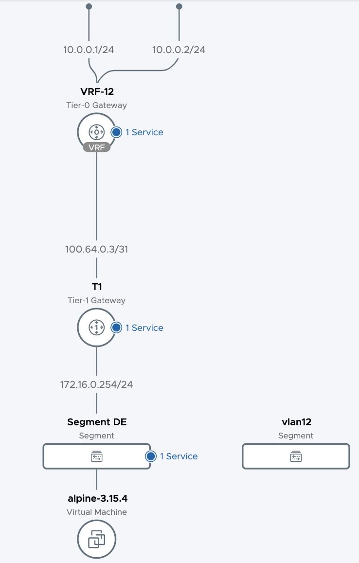 You can find the topology view of your configuration in the different NSX in the Networking > Networking Topology section.