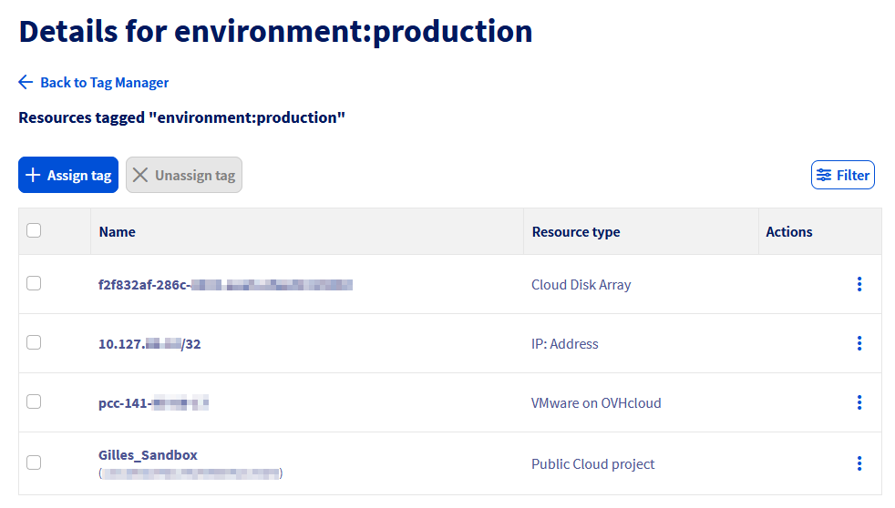 You can manage your OVHcloud product tags either through the general tag management interface or through dedicated interfaces within the products.