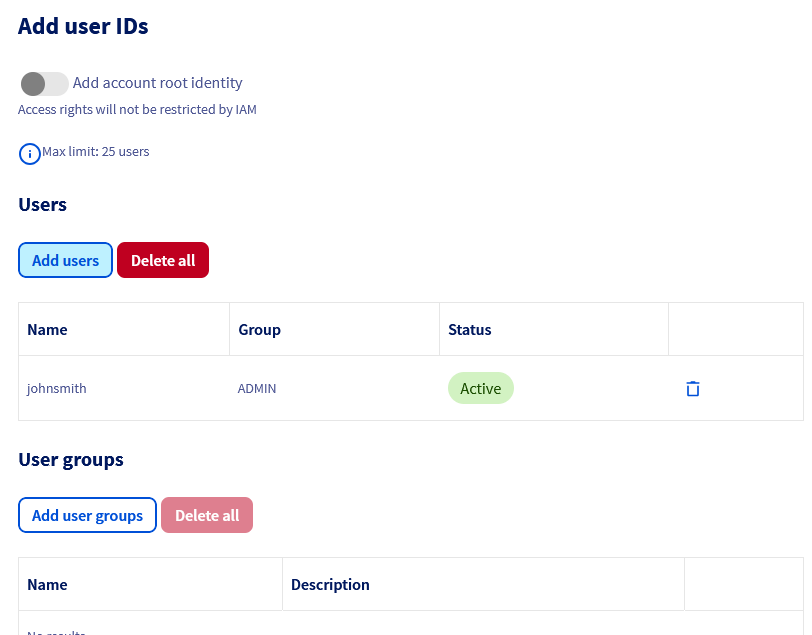 It is possible to add the root identity to the certificate so as not to be constrained by the OVHcloud IAM.