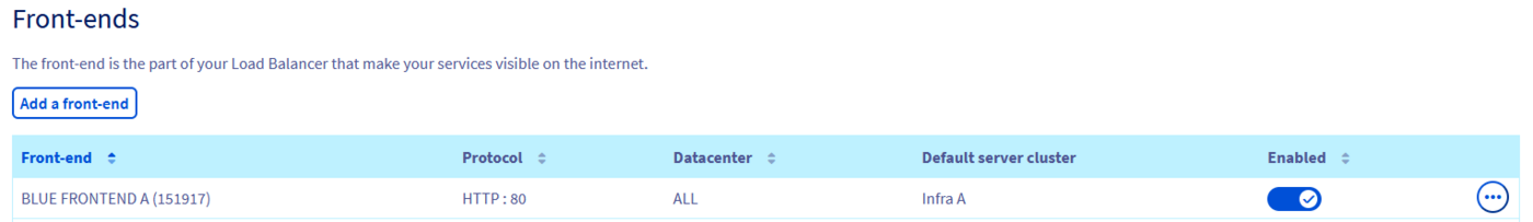 This should be the result on the OVHcloud Control Panel after updating the front-ends and applying the new configuration: