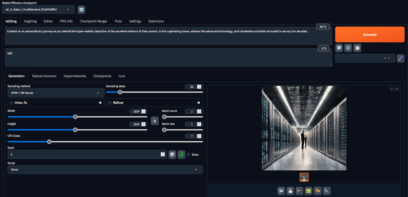 When your app is ready for use, you will be able to generate your first images using the default checkpoint.