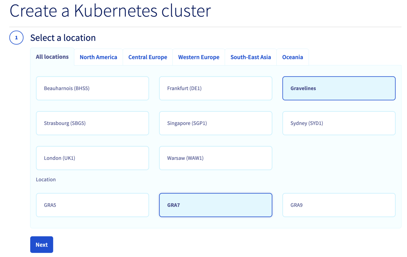 Select a location for your new cluster.