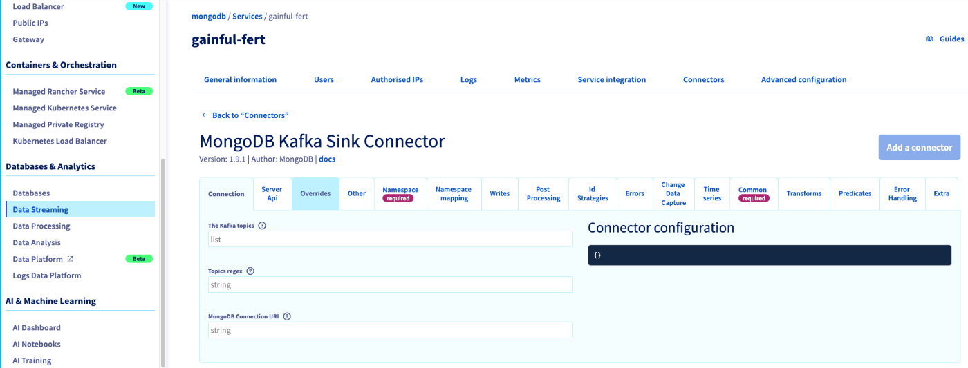 Set up a Kafka integration for Public Cloud Databases for MongoDB