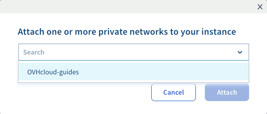 En la ventana emergente que aparece, seleccione la o las redes privadas que desee adjuntar a su instancia y haga clic en Confirmar.