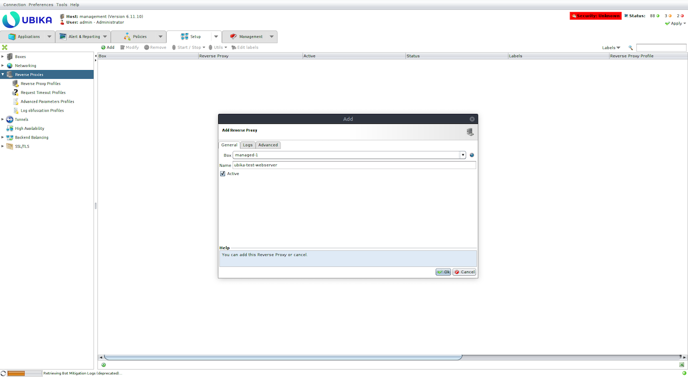 Create a Reverse Proxy (Setup -> Reverse Proxy -> Add) on one of the Ubika managed boxes: