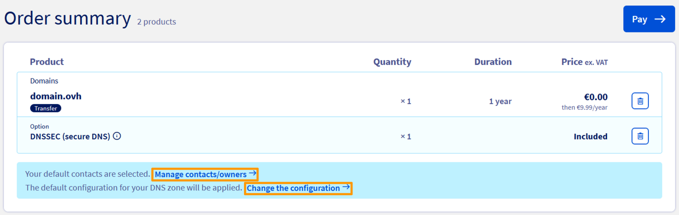 You can also complete your order with a web hosting plan and other OVHcloud solutions. This may be of interest to you, if you would also like to migrate your services to OVHcloud. Our guide to Migrating your website to OVHcloud provides instructions on how to do this.
