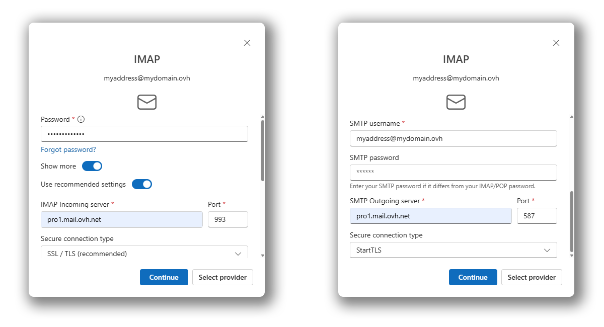 Servidor de entrada IMAP: pro?.mail.ovh.net