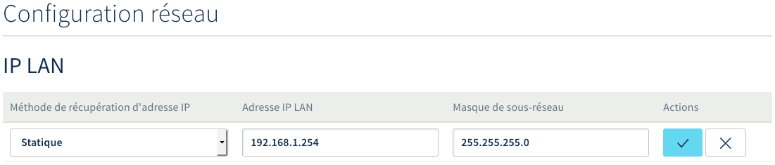 Une fois la configuration de l'IP LAN modifiée, validez le changement avec le bouton d'action correspondant.