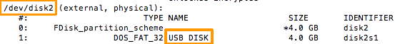 Vous obtiendrez plusieurs rubriques /dev/diskX (où X est remplacé par un chiffre).