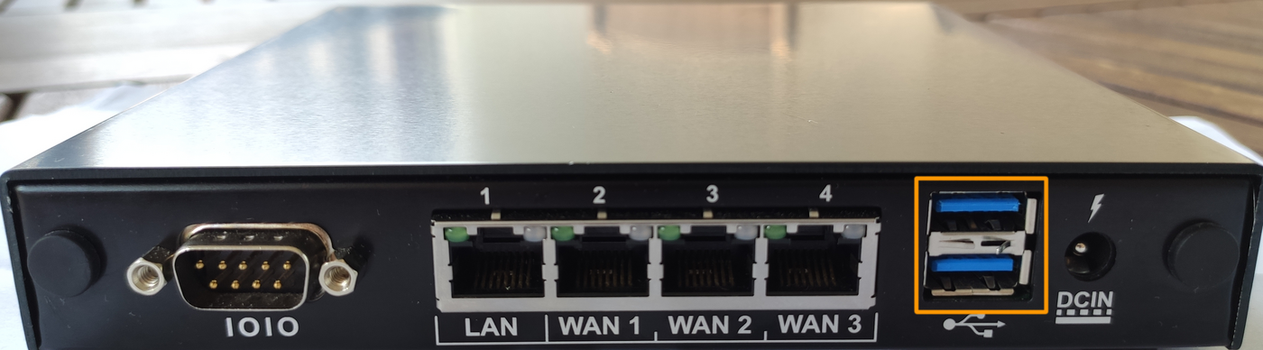 Dans le cas de l'OverTheBox Intel, la clé USB doit être branchée sur un des ports USB au dos de l'appareil.
