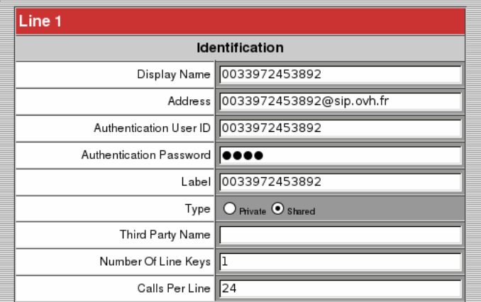 Dans le champ "Address", entrez le domaine de votre ligne : sip.ovh.xx (où xx est le code du pays : Belgique = be, France = fr, Suisse = ch, Espagne = es, Allemagne = .de et Angleterre = co.uk).
