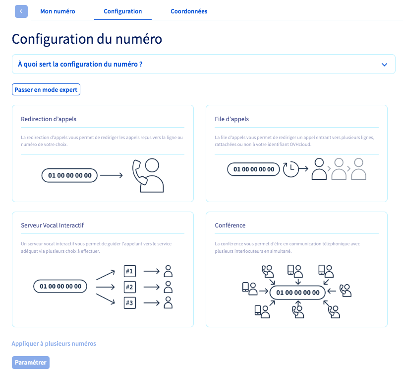 Lorsque vous disposez d'un numéro alias chez OVHcloud, qu'il soit nouvellement commandé ou porté, il est nécessaire de le configurer pour l'utiliser. Plusieurs types de configurations existent, vous permettant de répondre au mieux à vos besoins.