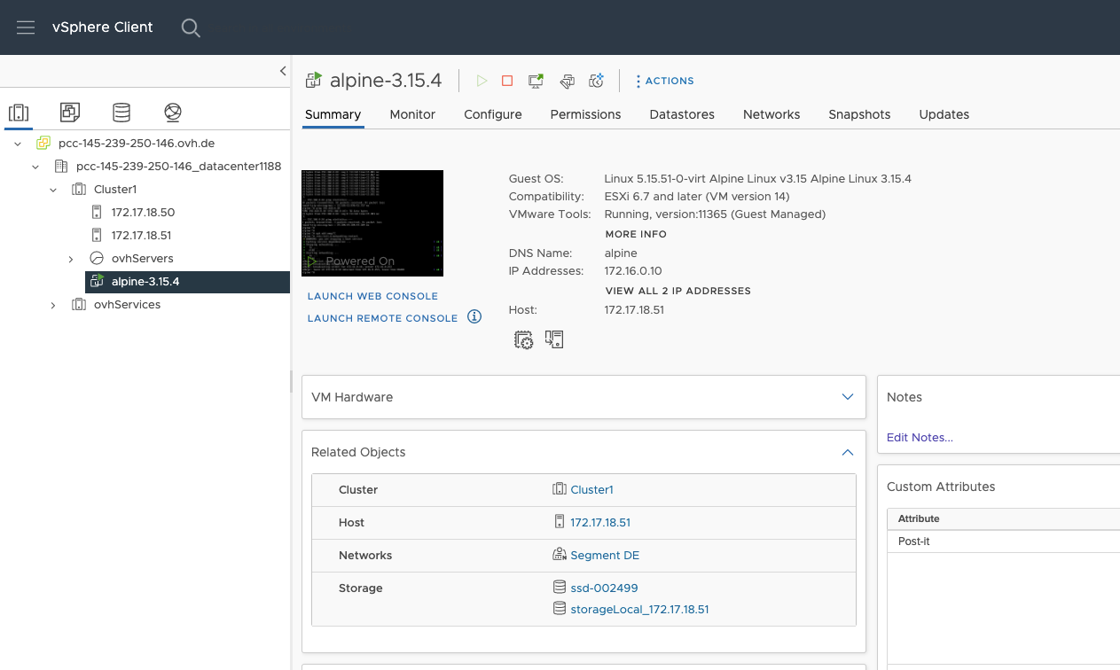 Créez une machine virtuelle dans le portgroup respectif DE Segment ou UK Segment. Si vous avez déployé un service DHCP, l'adresse IP devrait être attribuée automatiquement. Dans le cas contraire, configurez une adresse IP statique pour votre machine virtuelle.
