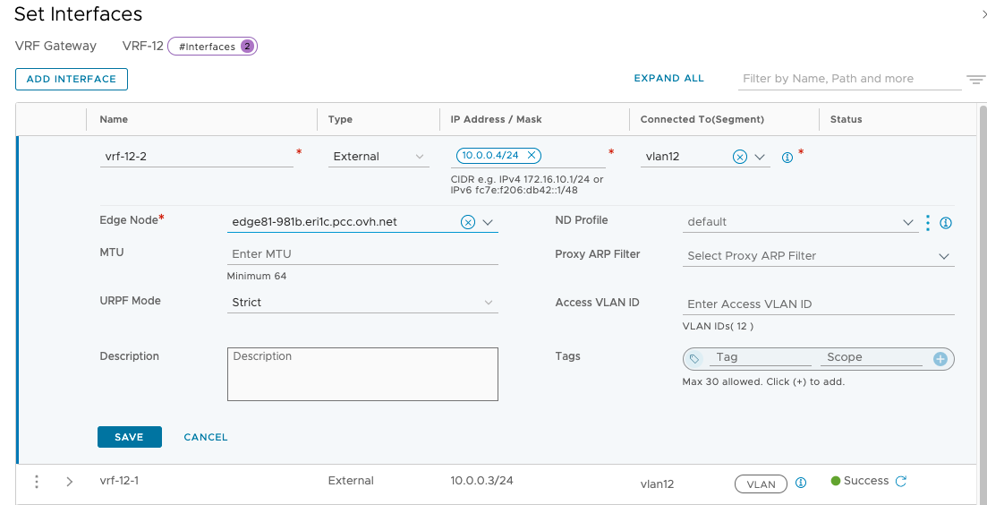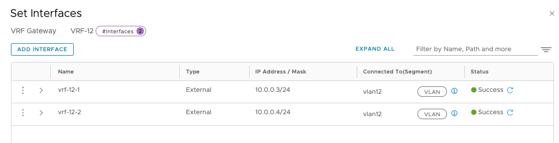 4. Vérifiez que vos deux interfaces sont créées et que leur statut est en Success (section Tier-0 Gateway).