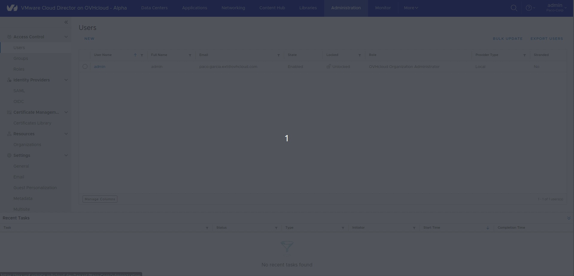 Vous pouvez voir sur la capture d'écran ci-dessous que les fonctionnalités les plus avancées proposées par VMware depuis toutes ces années sont présentes dans Vcloud Director (VCD) au sein d'une même console centrale d'administration.