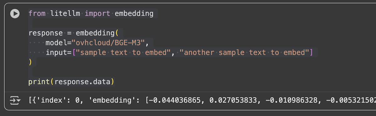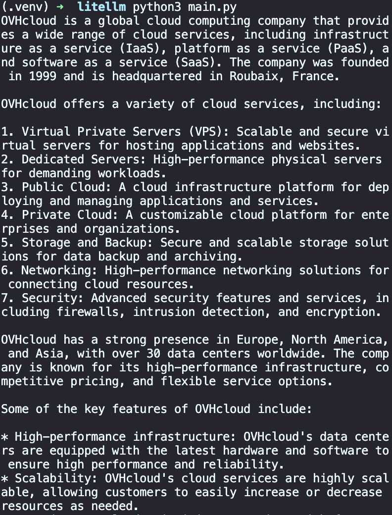 With LiteLLM's unified interface and OVHcloud's scalable AI infrastructure, you can quickly experiment, switch between models, and streamline the development of your AI-powered applications.