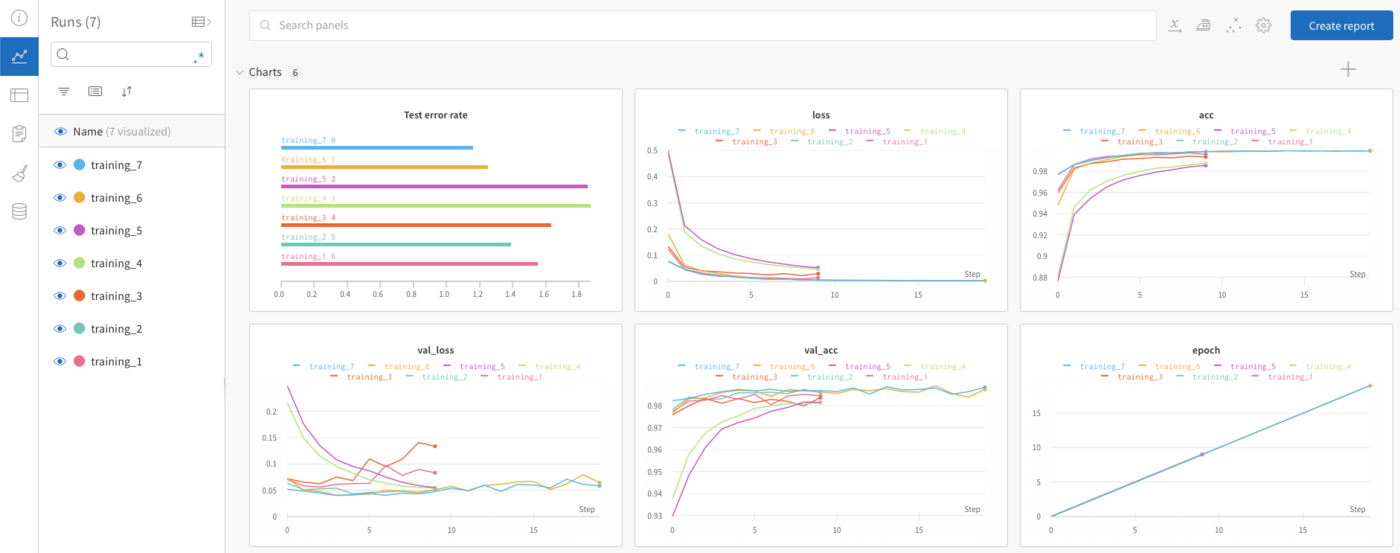Weight and Biases allow you to track your machine learning experiments, version your datasets and manage your models easily, like shown below :