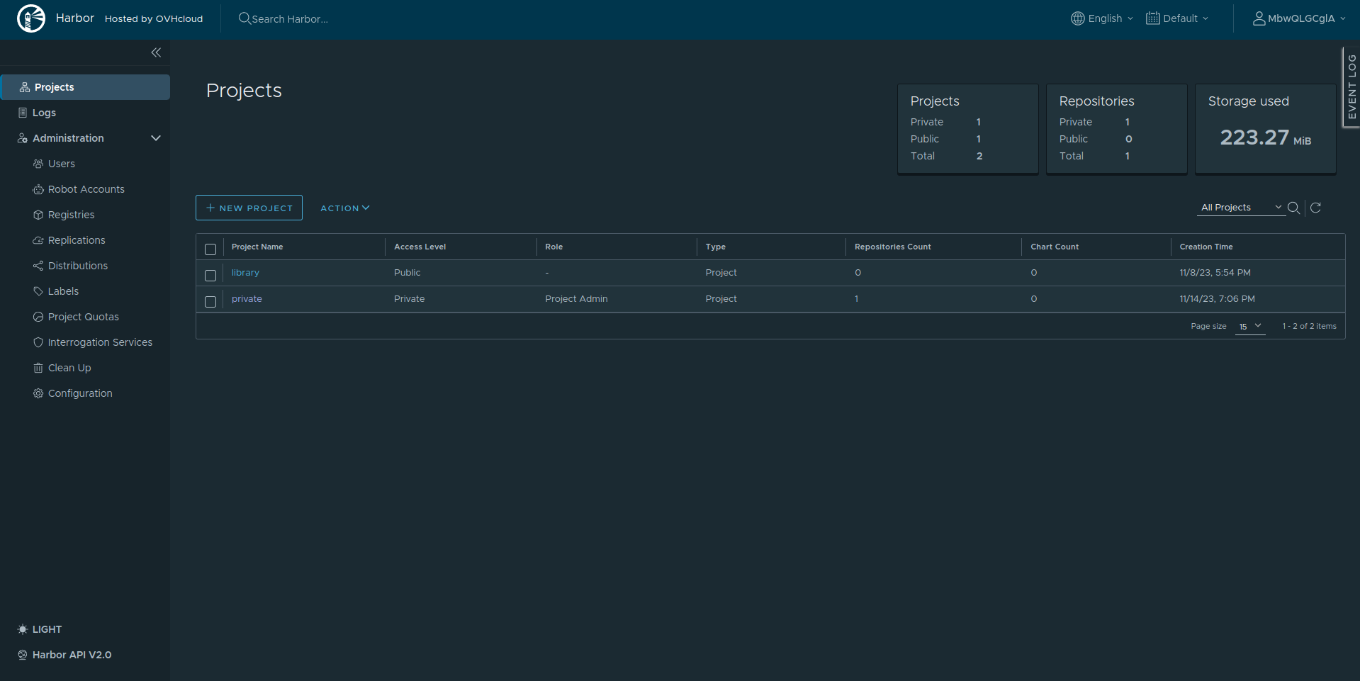 OVHcloud Managed Private Registry service is a composite cloud-native registry which supports both container image management and Helm chart management.