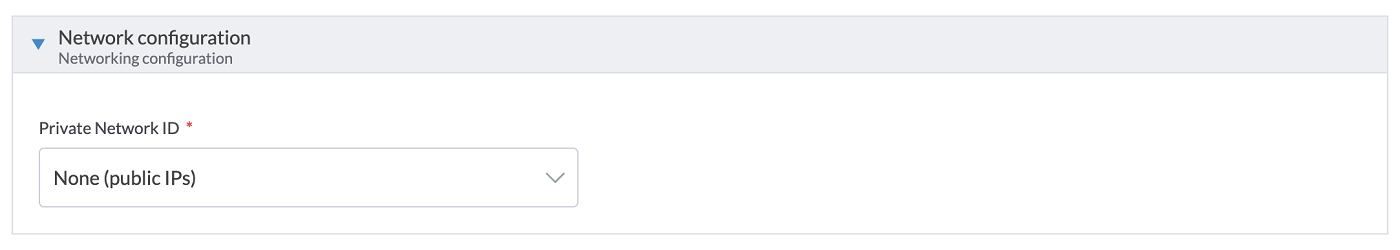 For the Network Configuration, in the Private Network ID field, select an existing OVHcloud Public Cloud private network or choose None if you want to create a cluster with nodes using only public interfaces.