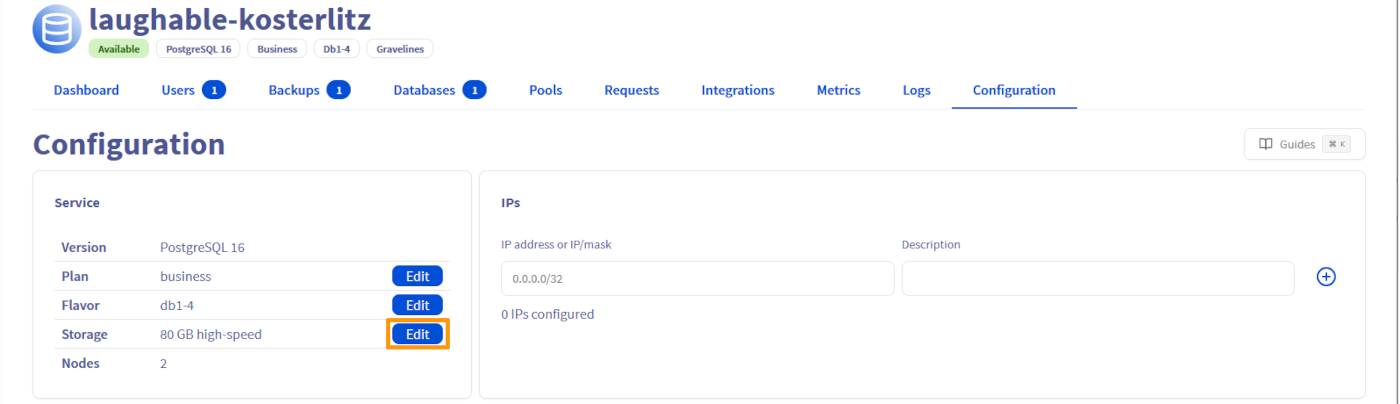 Ajuster le stockage d'une base de données Public Cloud (EN)
