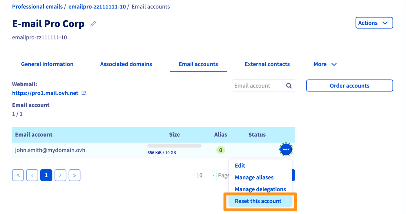 Après la réinitialisation de votre compte, si vous souhaitez le supprimer définitivement, vous devrez le résilier. Pour cela, consultez notre guide Gérer la facturation de vos comptes Email-Pro.