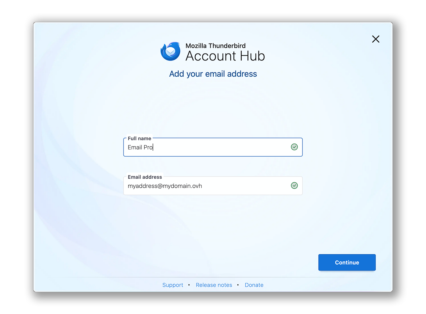 Saisissez le mot de passe associé à l'adresse e-mail, puis cliquez sur Continuer pour finaliser la configuration.
