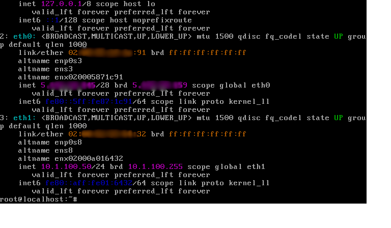 To collect the network adapter names, connect to your dedicated server and execute the ip address command :