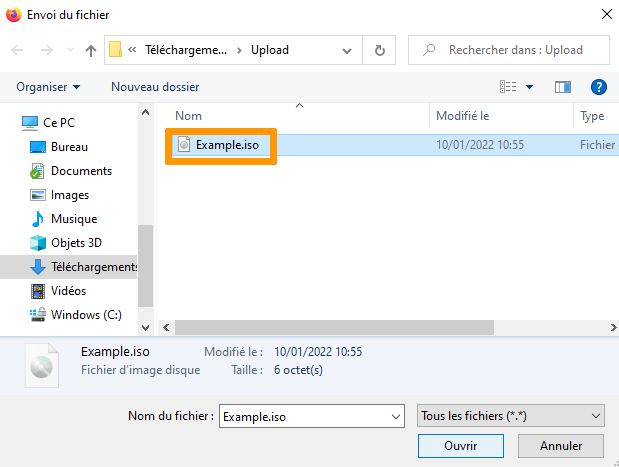 Browse to the ISO file(s) you wish to upload and click Open.