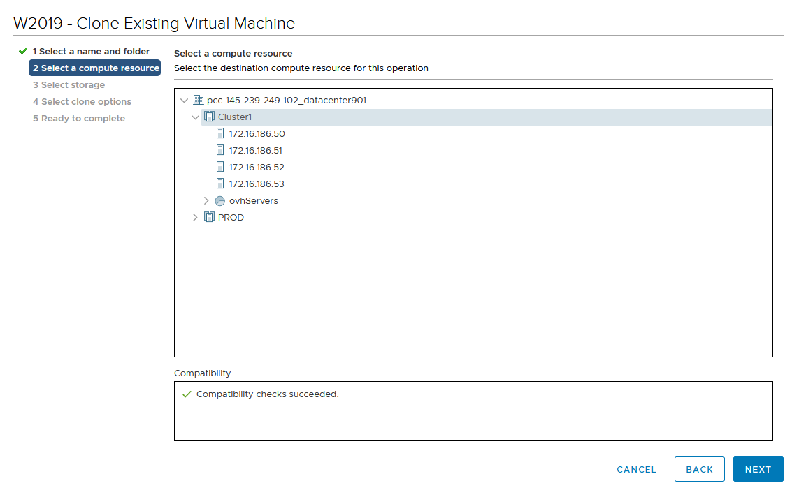 Select the clone VM compute location.