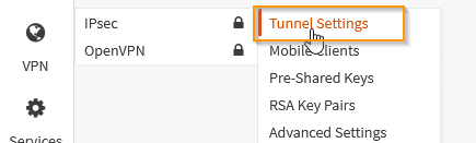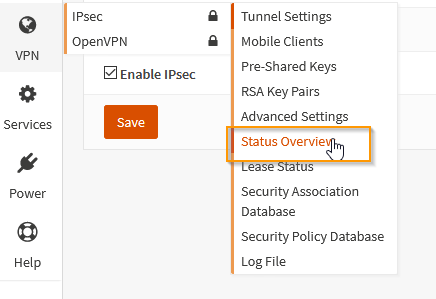 From the OPNsense interface, go to the VPN menu on the left, IPSec section and select Tunnel Setting. Click Enable IPsec and click save.