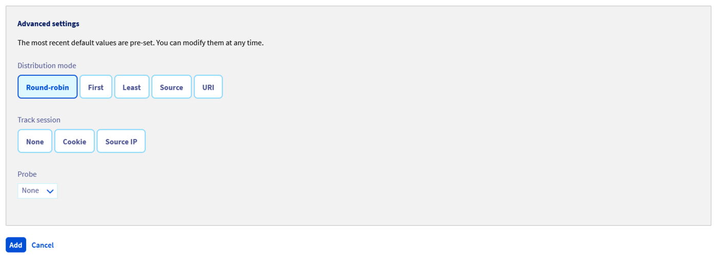 This is the simplest probe to set up. It is compatible with tcp and http farms. If no other probe is configured, you can activate this one to start. It works by periodically trying to open a connection on each of your servers. If the connection fails twice in a row, the server is put aside until it responds again.