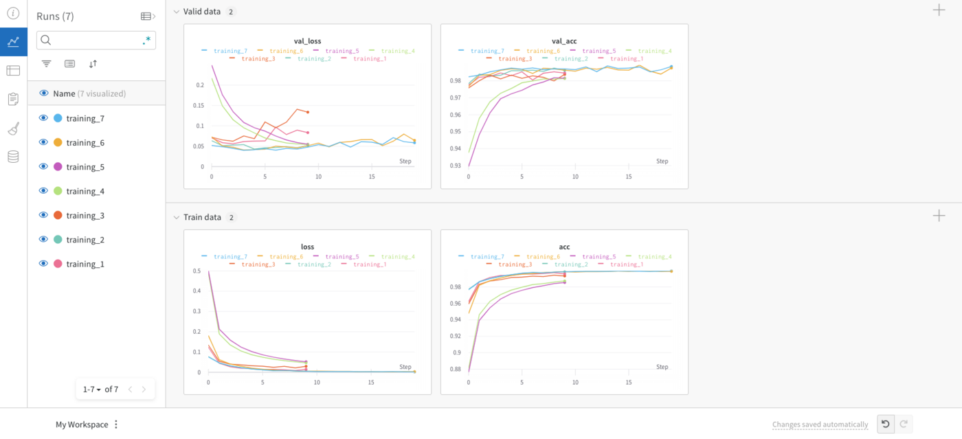 You can then compare your trainings using the Parallel coordinates graph type:
