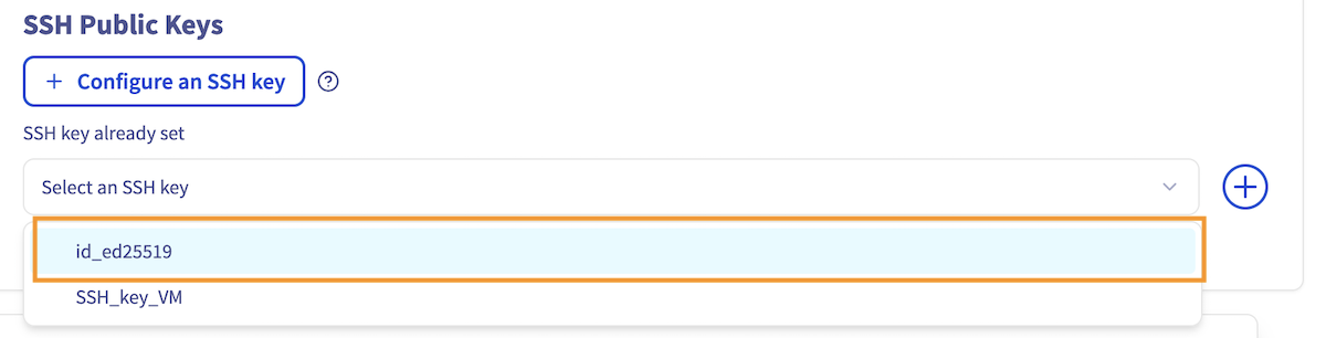 From there you will find a SSH Public Keys sub-section where you can add and configure new SSH keys by clicking on the + Configure an SSH Key button: