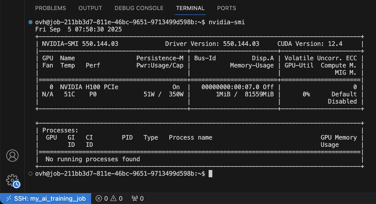 ssh < job-i d > @ < regio n > .ai.cloud.ovh.net