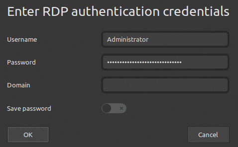 Indipendentemente dal client utilizzato, per consentire l'accesso dell'account Administrator sono necessari solo l'indirizzo IP dell'istanza e la password.