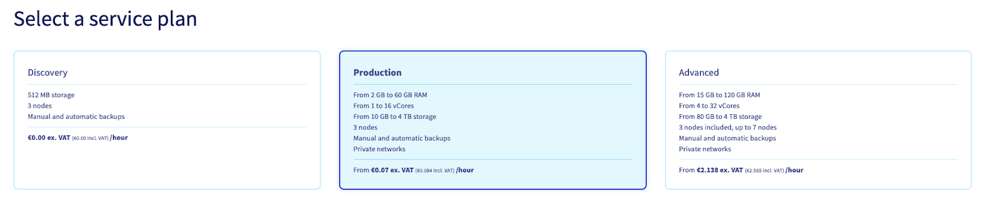 Choose an appropriate service plan. You will be able to upgrade the plan after creation.