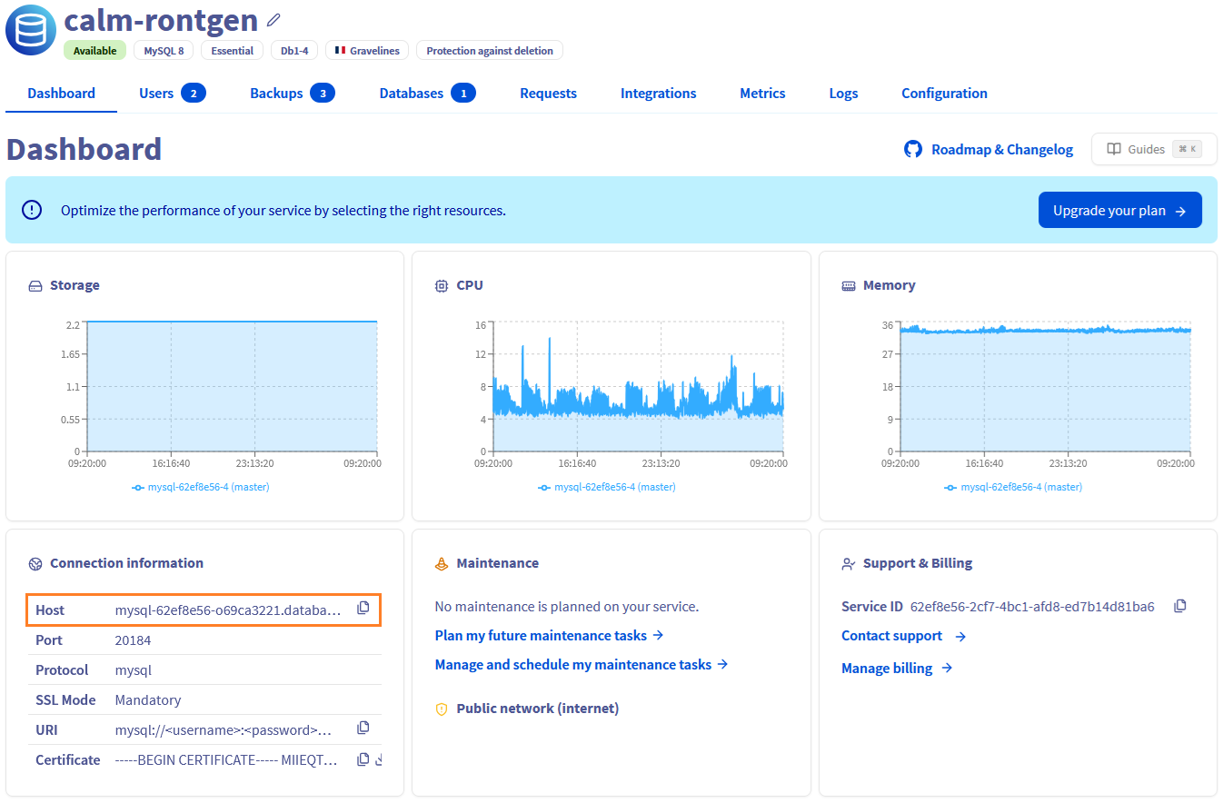 Now you can see the Host field with the format <HostID>.database.cloud.ovh.net