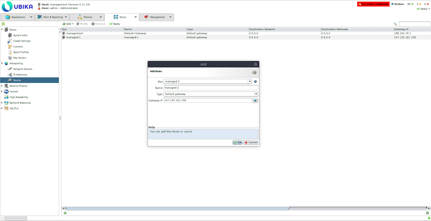 Add the first managed UWG instance to the UWG management (Setup > Boxes > Add):