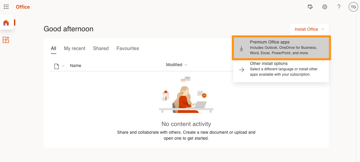 Accedi alla pagina https://portal.office.com/ e connettiti con l'indirizzo email di attivazione e con password configurati in precedenza. Verrai reindirizzato a una finestra che ti permetterà di scaricare la suite Microsoft 365 sul tuo computer con le istruzioni di installazione.