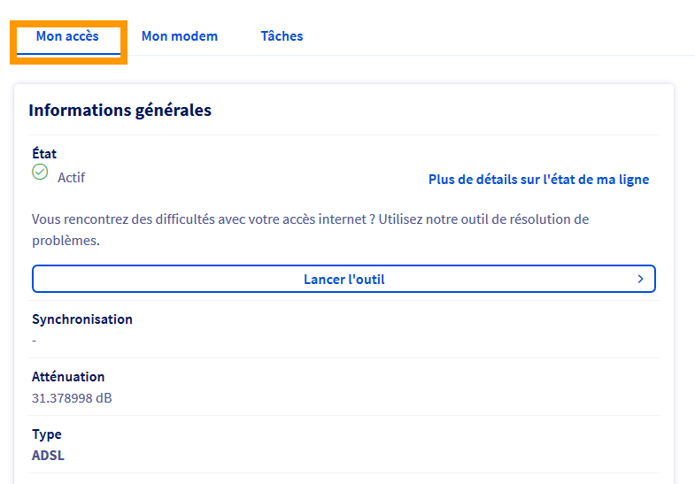 Offres Internetpuis sur le Pack contenant l'accès à Internet concerné. - Cliquez sur votre accès à Internet FTTH ou xDSL dans le cadre