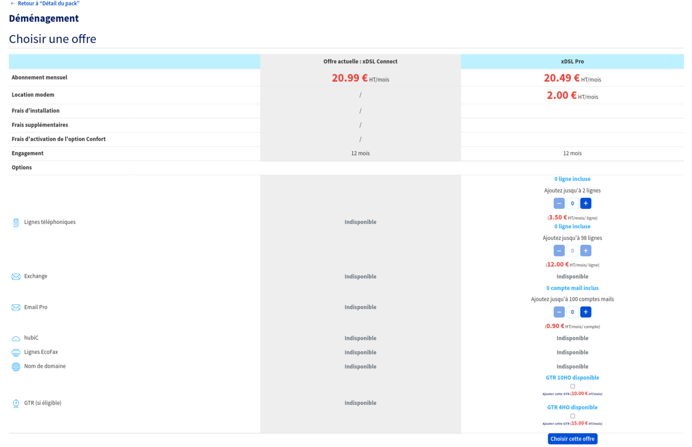 Lors de votre demande de déménagement, vous avez la possibilité de conserver votre offre actuelle ou d'en choisir une nouvelle.
