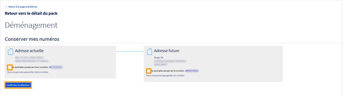 Cette étape n'apparaît que si la création d'une nouvelle ligne est demandée à la nouvelle adresse ou lors de l'installation d'un abonnement Fibre.