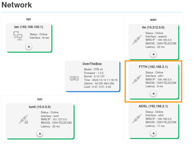 Dans notre cas, notre OverTheBox possède trois interfaces WAN: