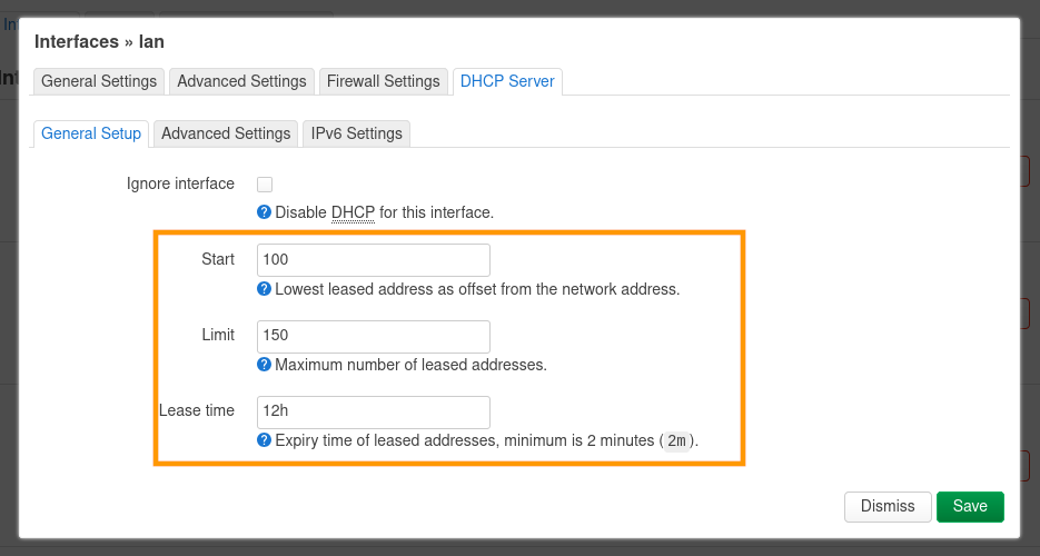 Modifiez le paramètre Limit pour modifier le nombre d'IP que le DHCP peut allouer.