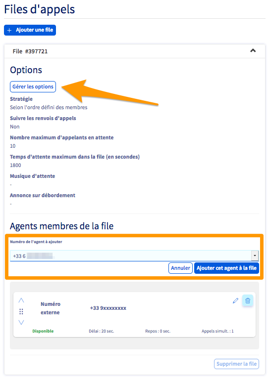 Les files d'appels regroupent plusieurs agents (des lignes téléphoniques internes ou externes) qui vont sonner selon une stratégie que vous définissez dans l'espace client.