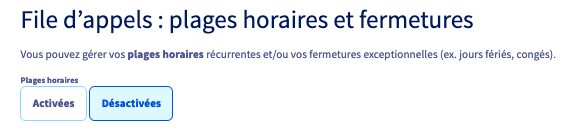 Si votre numéro est déjà en production, nous vous conseillons de définir vos plages horaires et leur configuration avant de les activer.