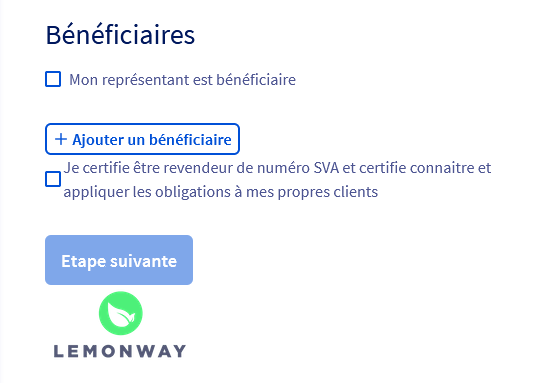 « Je certifie être revendeur de numéro SVA et certifie connaître et appliquer les obligations à mes propres clients » (si vous avez choisi le type de compte « Professionnel revendeur »).