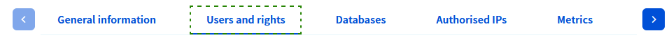 La soluzione Web Cloud Databases può contenere diversi database. Permette di definire uno o più utenti per la gestione e l'utilizzo dei database. Questi utenti possono disporre di diritti più o meno elevati in base al loro ruolo a livello di database.